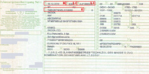 Zur Erstellung eine Angebotes ist die Eingabe der KBA-Nummer aus dem Fahrzeugschein (Zulassungsbescheinigung Teil 1) notwendig: